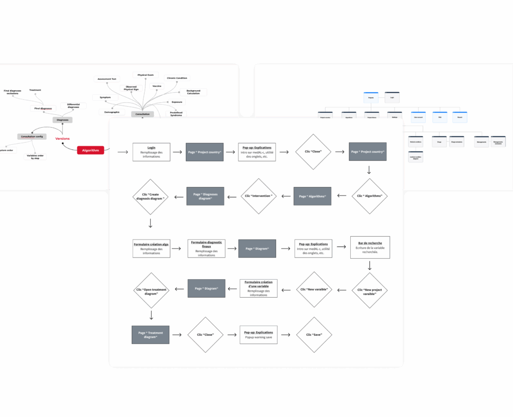 Mon travail a commencé par une phase de recherche comprenant un audit de l’outil, des observations et des entretiens utilisateur·trice afin de comprendre les points de friction et les besoins des cliniciens.